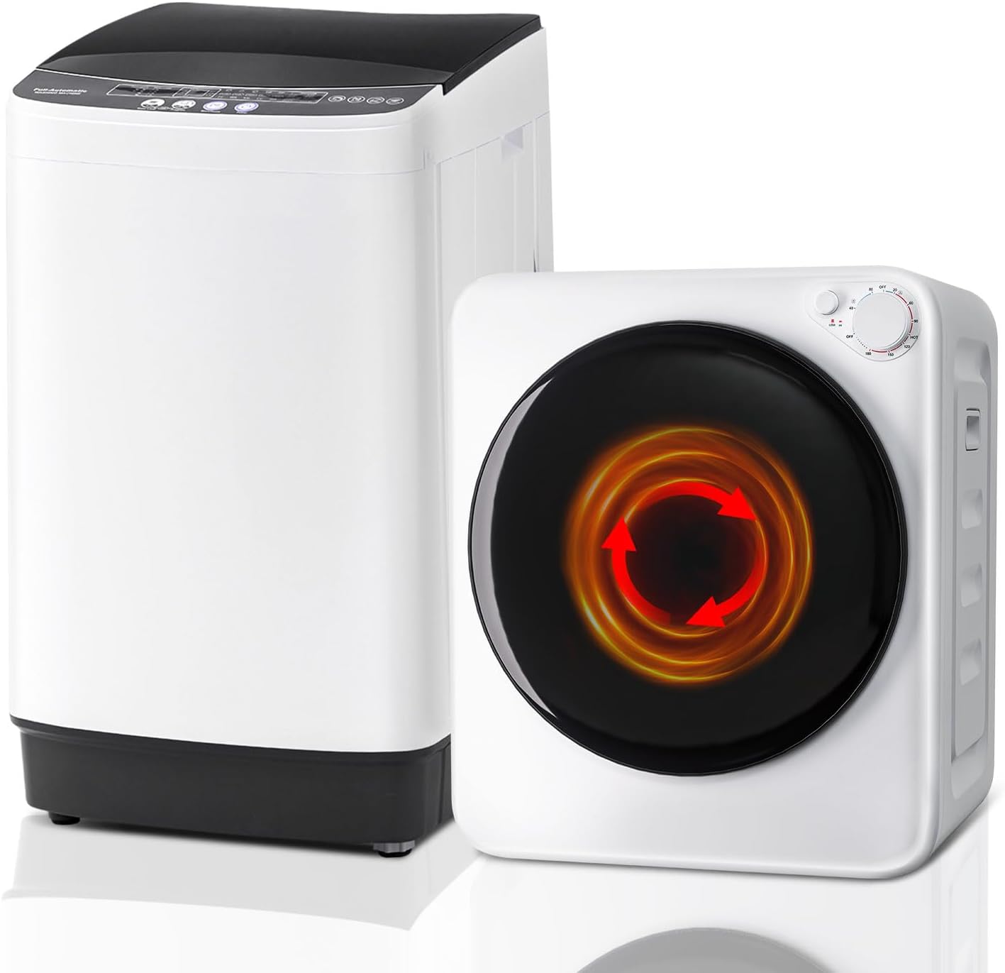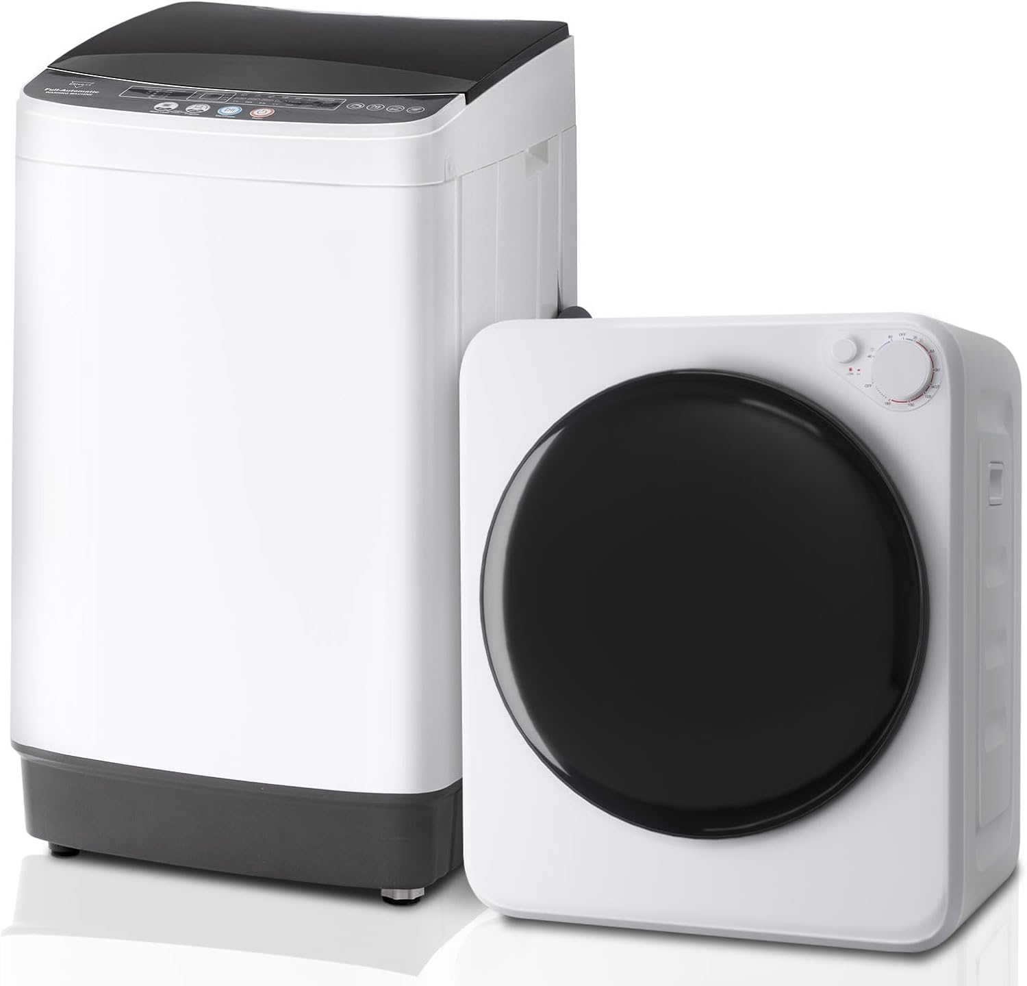 Portable Washer and Dryer Combo Set, 17Lbs Full-Automatic Washing Machine and 1.8 Cu.Ft Portable Clothes Dryer, Compact Washer and Dryer with Stainless Steel Inner Tub, for Apt, Dorm, Home